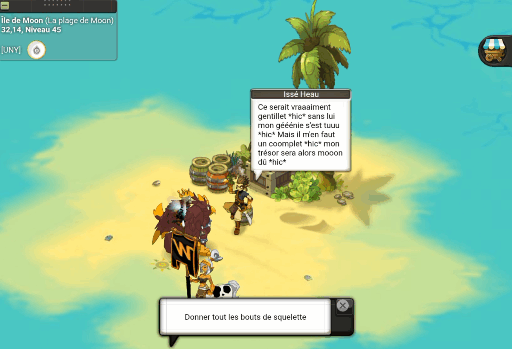 Vous vous trouvez alors face Ă IssĂ© Heau qui semble avoir plusieurs problèmes… aujourd’hui nous allons l’aider Ă lui confectionner un nouveau squelette… avec les objets pirates rĂ©cupĂ©rĂ©s !