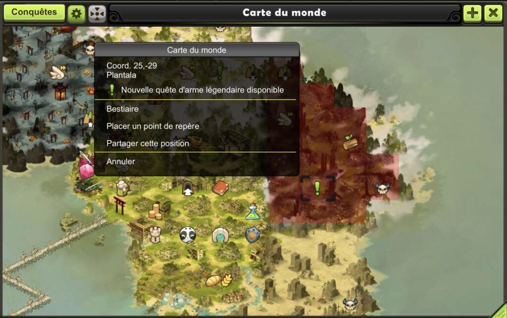 Les bons plan de Papycha : Lorsque vous prenez la quête il est possible d’aller la valider à la forge élémentaire de Pandala. Cela à pour effet de déplacer le PNJ à la forge afin d’en apprendre plus sur son histoire et de terminer la quête dans votre livre de quête. Mais pas d’inquiétude, tant que vous avez cette indication sur votre placement lorsque vous êtes présent dans la zone, c’est que le drop est possible (cf. le screen juste en dessous).