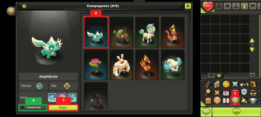 4 : Vous pouvez choisir de jouer le compagnon par vous-mĂŞme ou bien d’activer le mode « ContrĂ´le automatique »