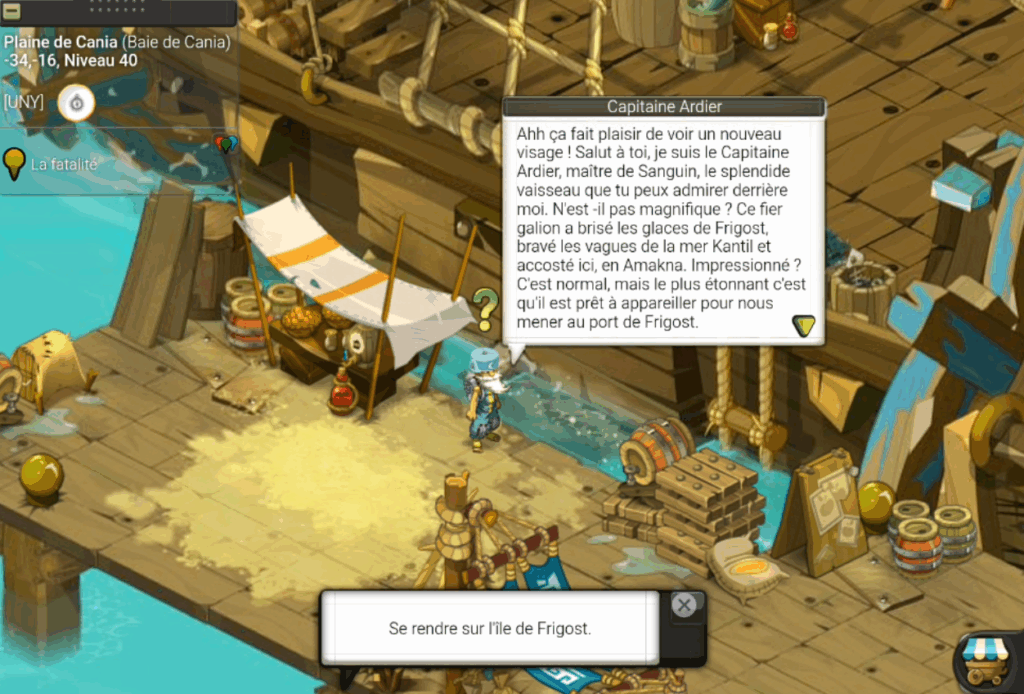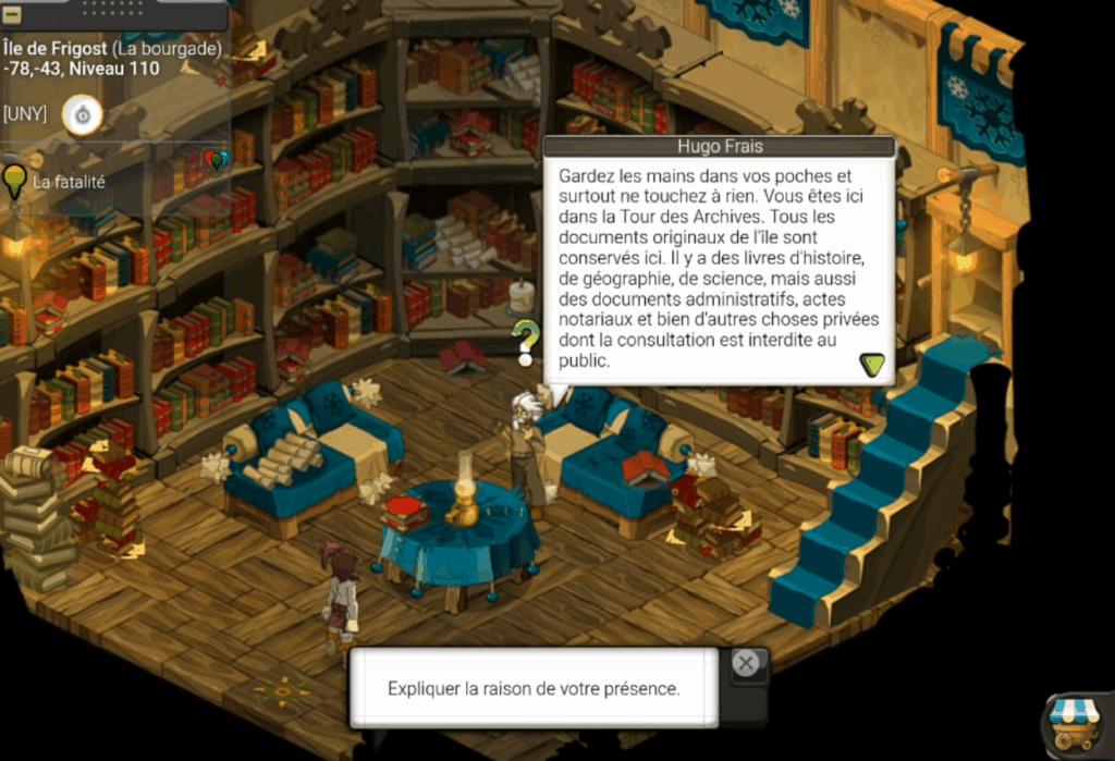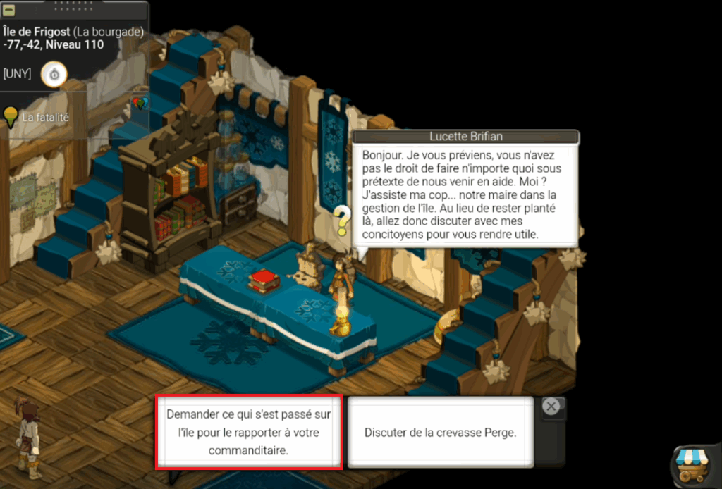Une fois arrivé sur l’Île de Frigost, allez rendre visite à Lucette Brifian située en [-77,-42] pour en apprendre plus sur l’histoire de Frigost :